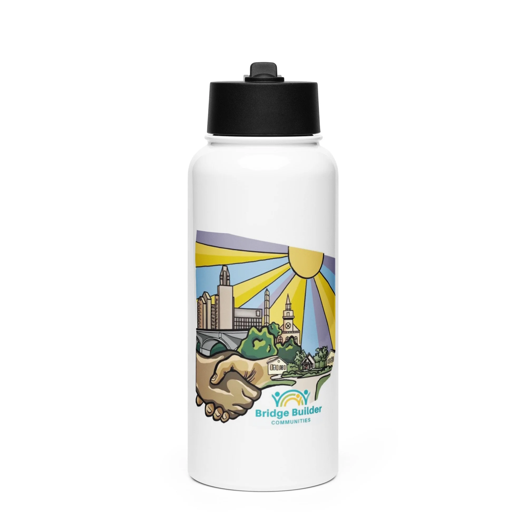 Mural inspired Stainless steel water bottle with a straw lid